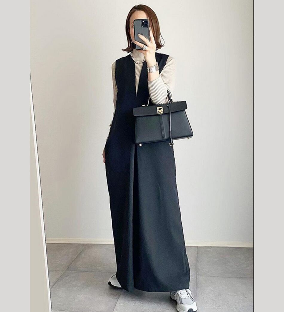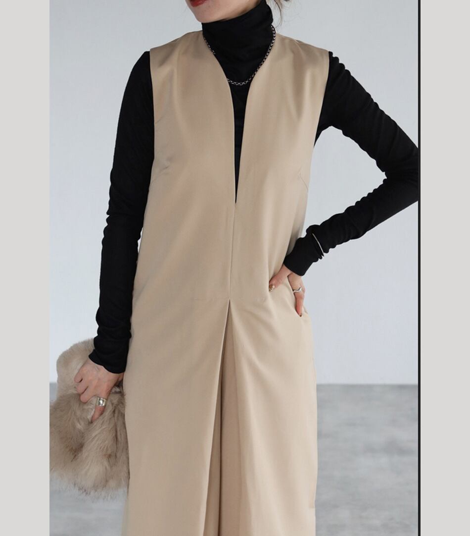 秋にピッタリな素材のワンピースは今季注目のアイテム。