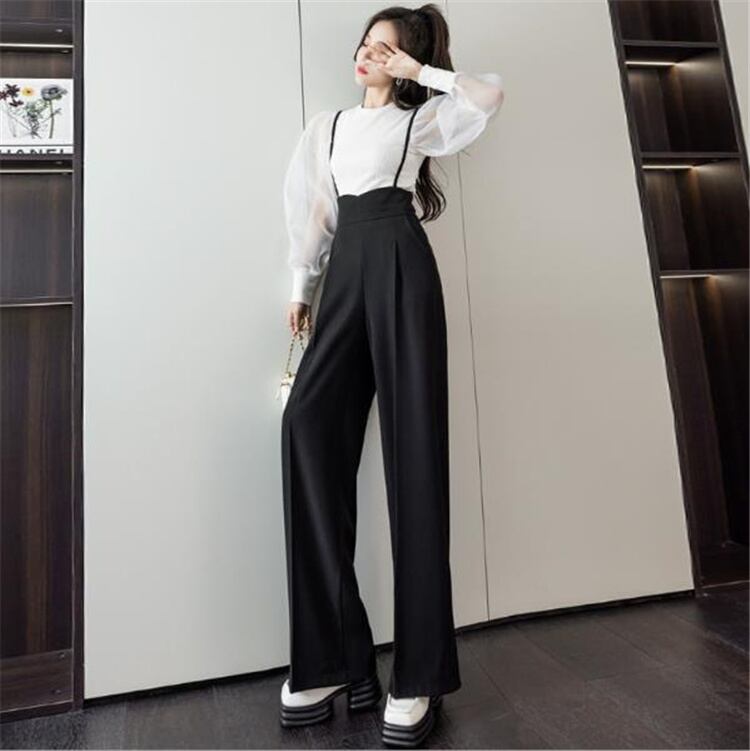 ◎【送料無料】大満足のレビュー多数 韓国版 ハイウエスト ワイド脚 サロペット 女性 ゆったり ストレート キャミソール
