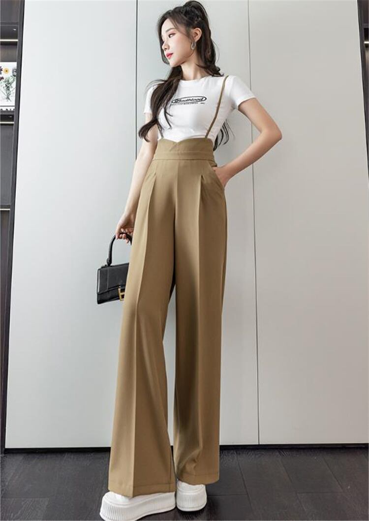 韓国版 ハイウエスト ワイド脚 サロペット 女性 ゆったり ストレート キャミソール