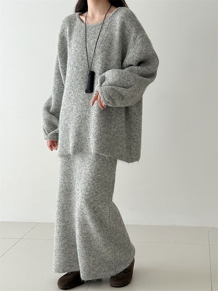 ◎【送料無料】2025 AW ゆったりニット+フレアスカート 上下セット
