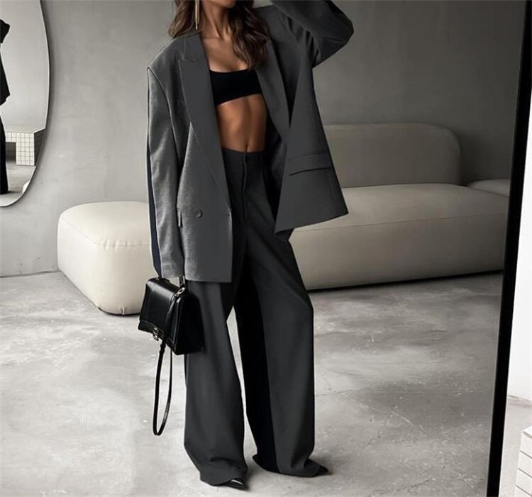 ラペルジャケットとワイドパンツ オフィス対応 ルーズフィット 2点セット