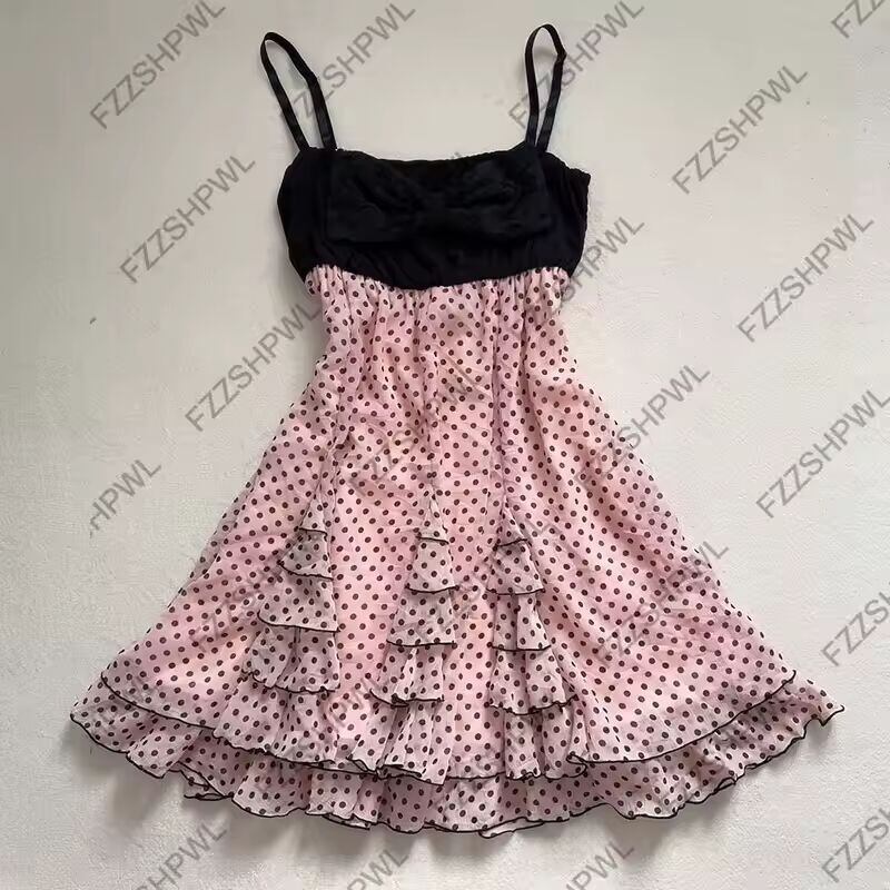 【送料無料◎】 ストリートウェア原宿ポルカドットプリントY2KドレスファッションパンクブレーススカートスパイシーガールズロックゴスユニークロックパンクシックAラインスカート
