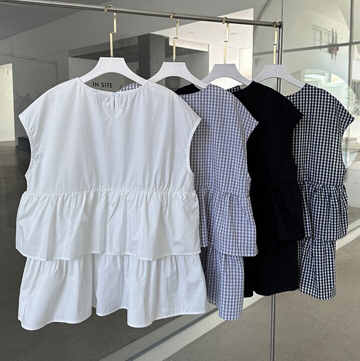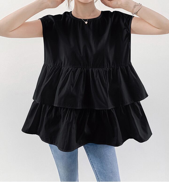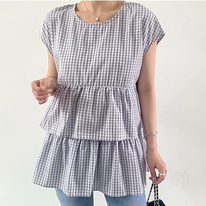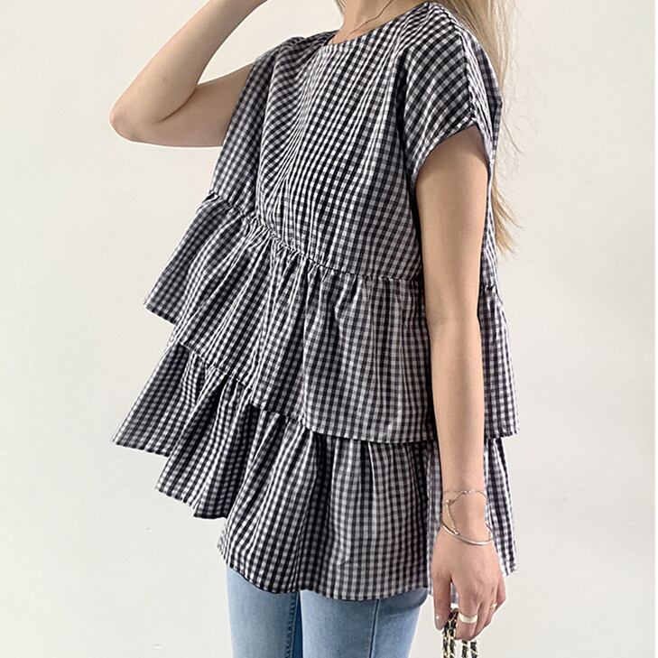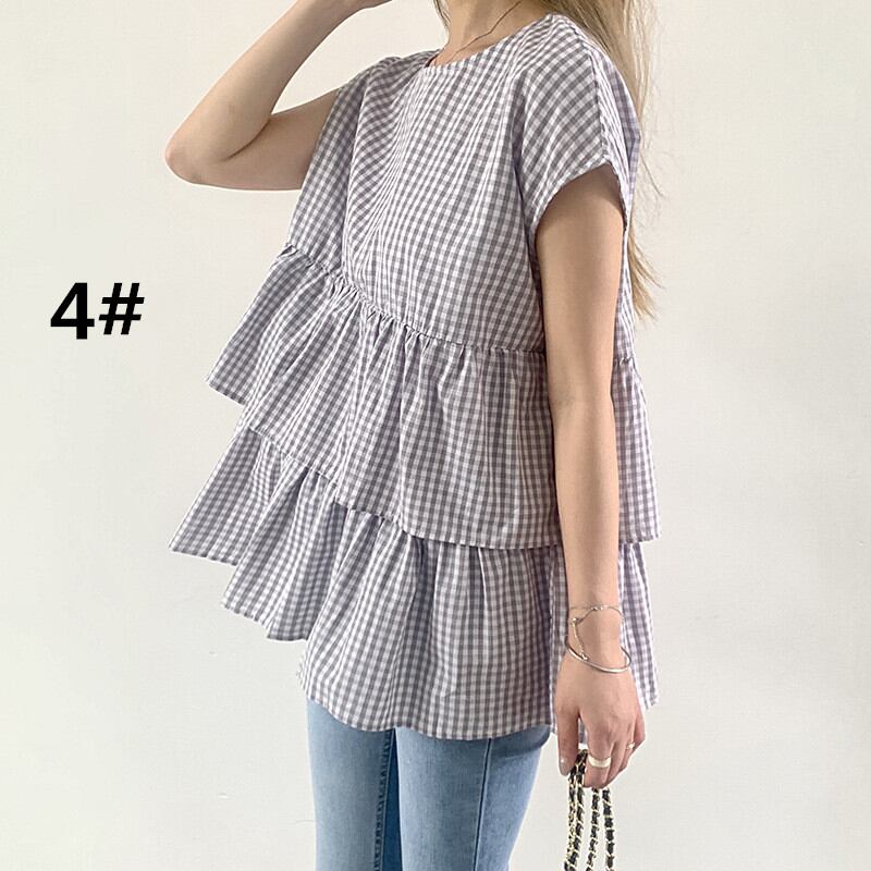 ◎【送料無料】夏新作 ブラウス シャツ 半袖シャツ レディース トップス ビッグシルエットラウンドネック Sweet 可愛い