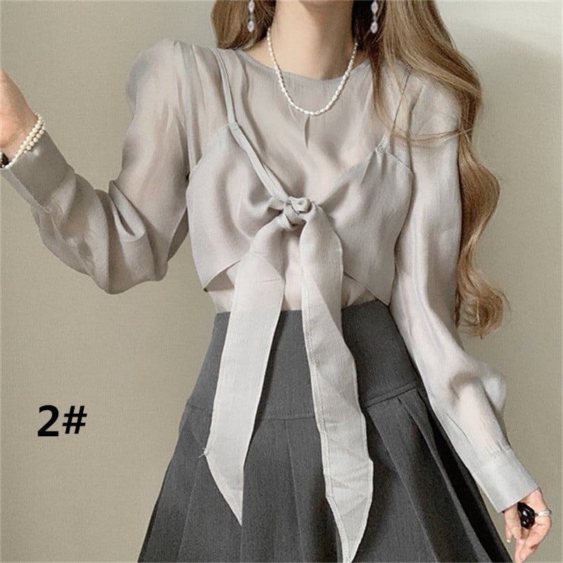 ◎【送料無料】2026年秋新作 ブラウス シャツ 長袖ブラウス トップス レディース 透け感あり ラウンドネック 気質