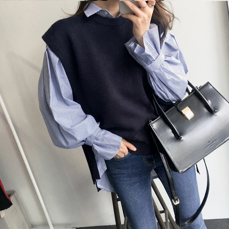 ◎【送料無料】秋新作 ベスト ブラウス シャツ トップス レディース ストライプ 長袖シャツ Sweet 韓国風