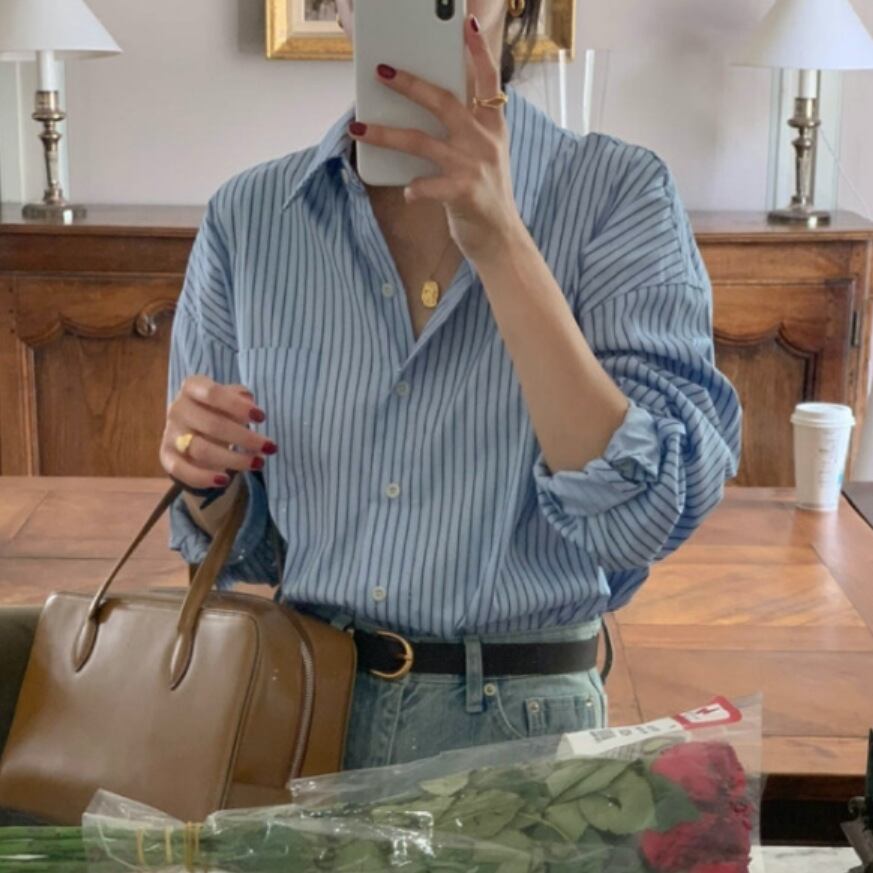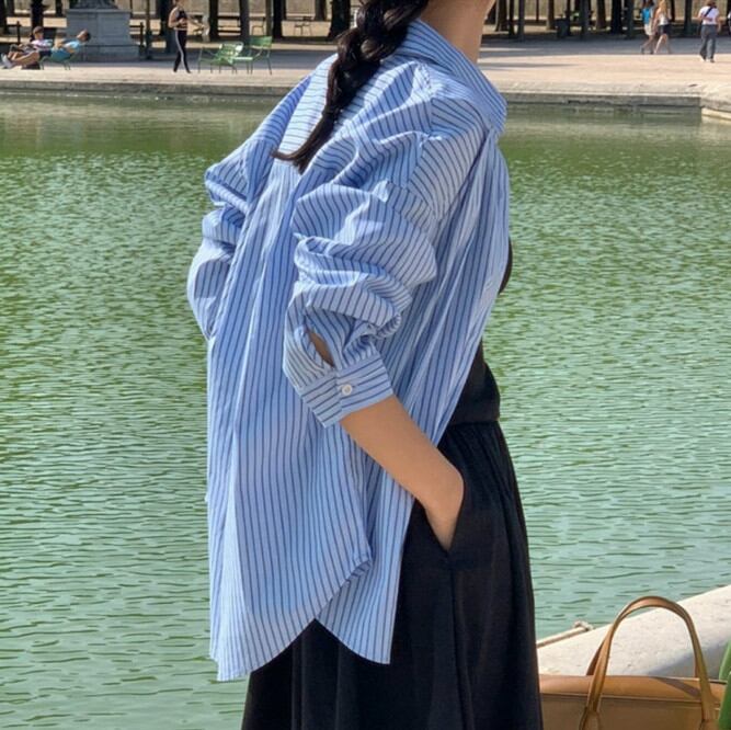 ◎【送料無料】秋新作 ブラウス シャツ 長袖ブラウス レディース トップス ストライプ カジュアル 韓国風