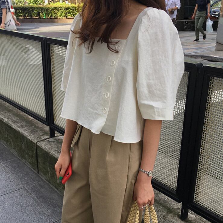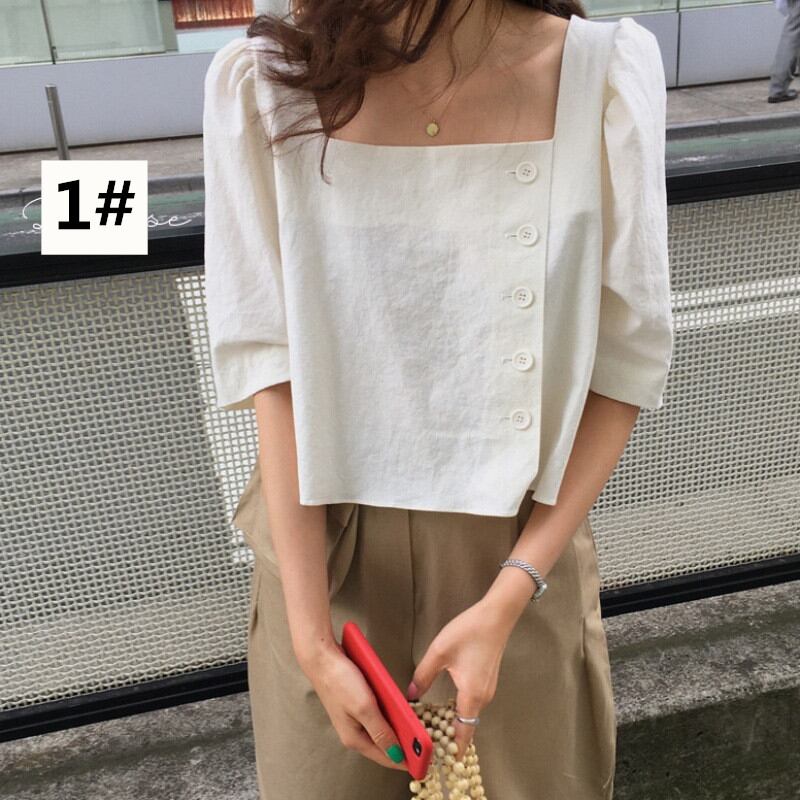 ◎【送料無料】ブラウス ショットタイプ シャツ レディース トップス ハブスリープ シンプル 不規則デザイン 気質 Sweet