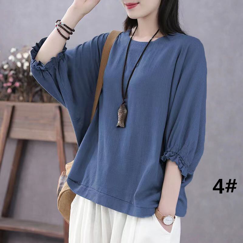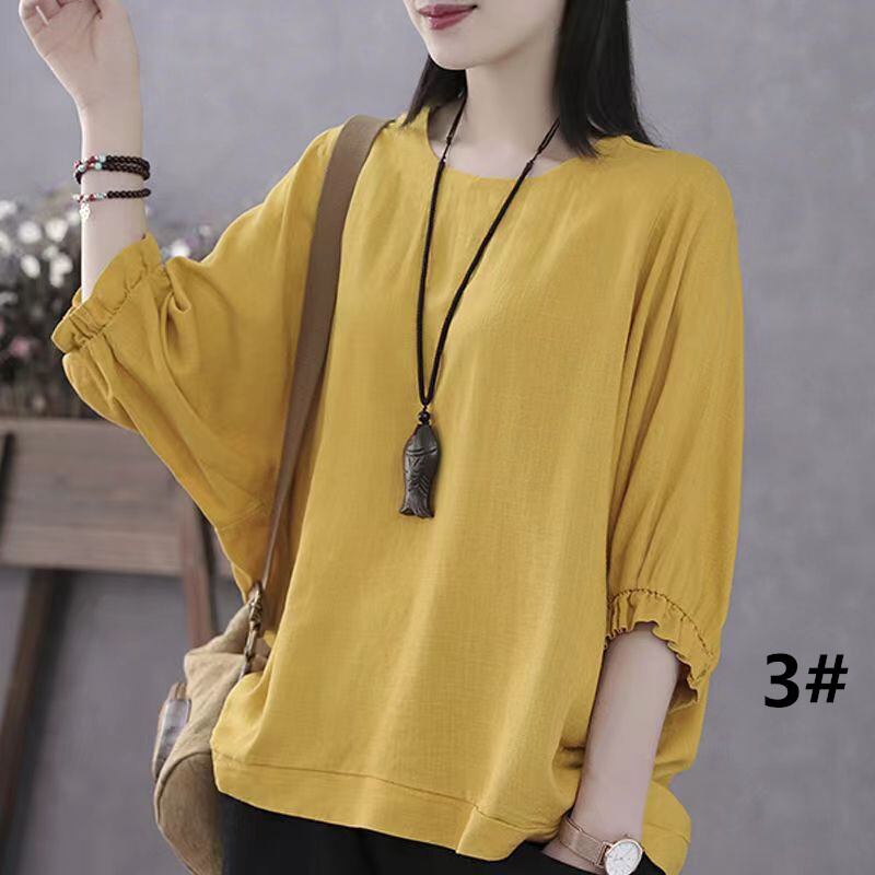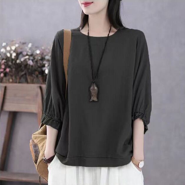 ◎【送料無料】tシャツ シャツ レディース トップス 2026年新作 ラウンドネック 半袖シャツ ランタンスリープ レトロ