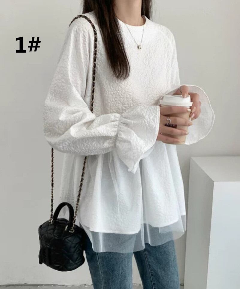 ◎【送料無料】2026年春新作 ブラウス トップス 長袖ブラウス レディース シフォンシャツ ラウンドネック ゆったり 気質