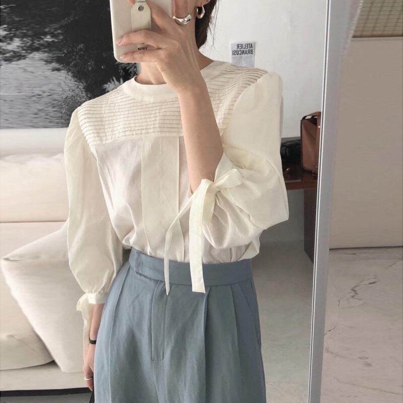 ◎【送料無料】2026年春夏新作 ブラウス シャツ トップス レディス 長袖シャツ ラウンドネック 気質 韓国風