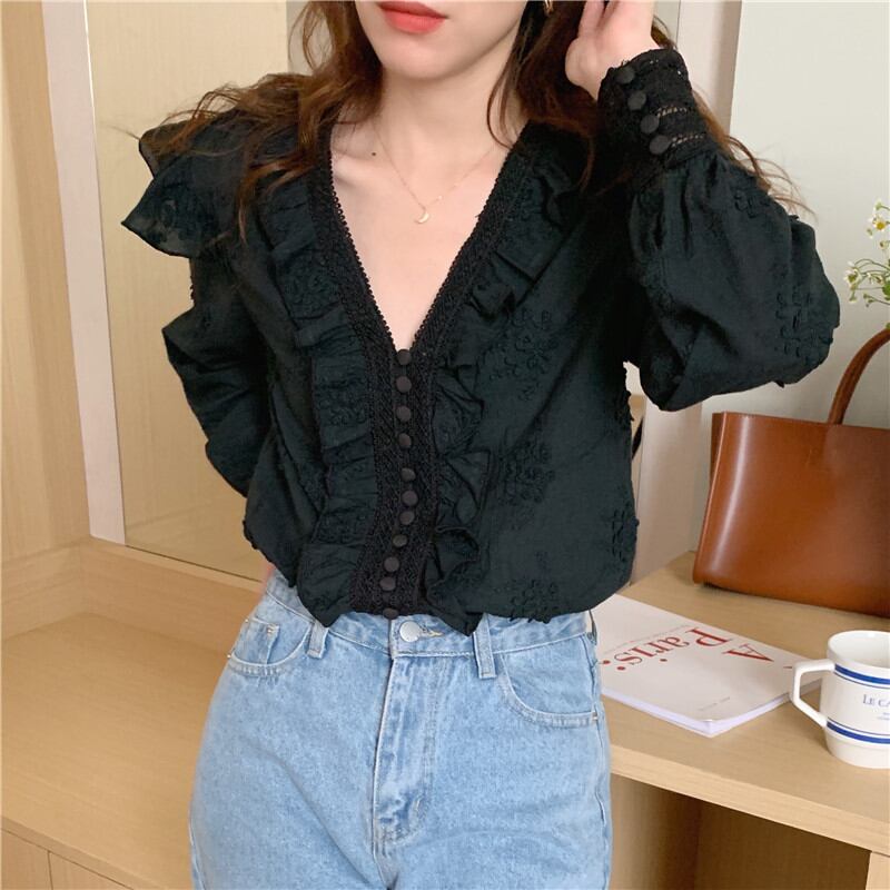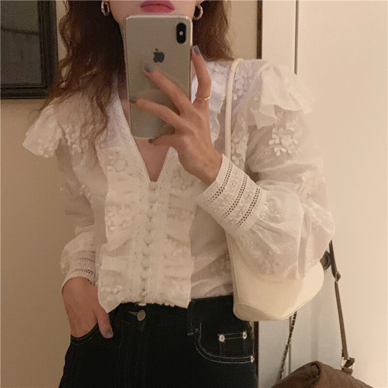 ◎【送料無料】2026年新作 ブラウス トップス レディース 長袖シャツ Vネック ハブスリープ 気質 オシャレ