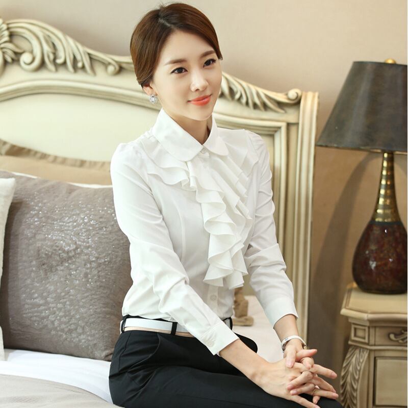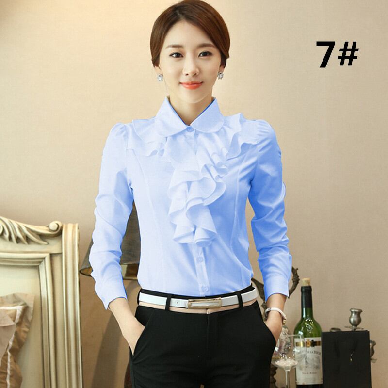 ◎【送料無料】ブラウス シャツ オフィスシャツ 長袖 フリル オフィス 立ち襟 ビジネス 通勤 OL