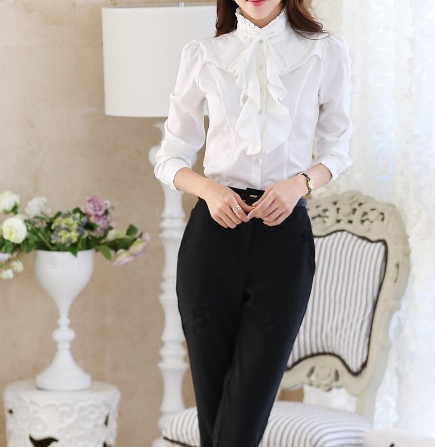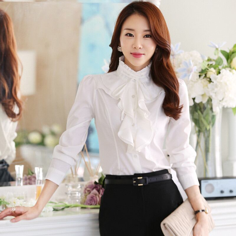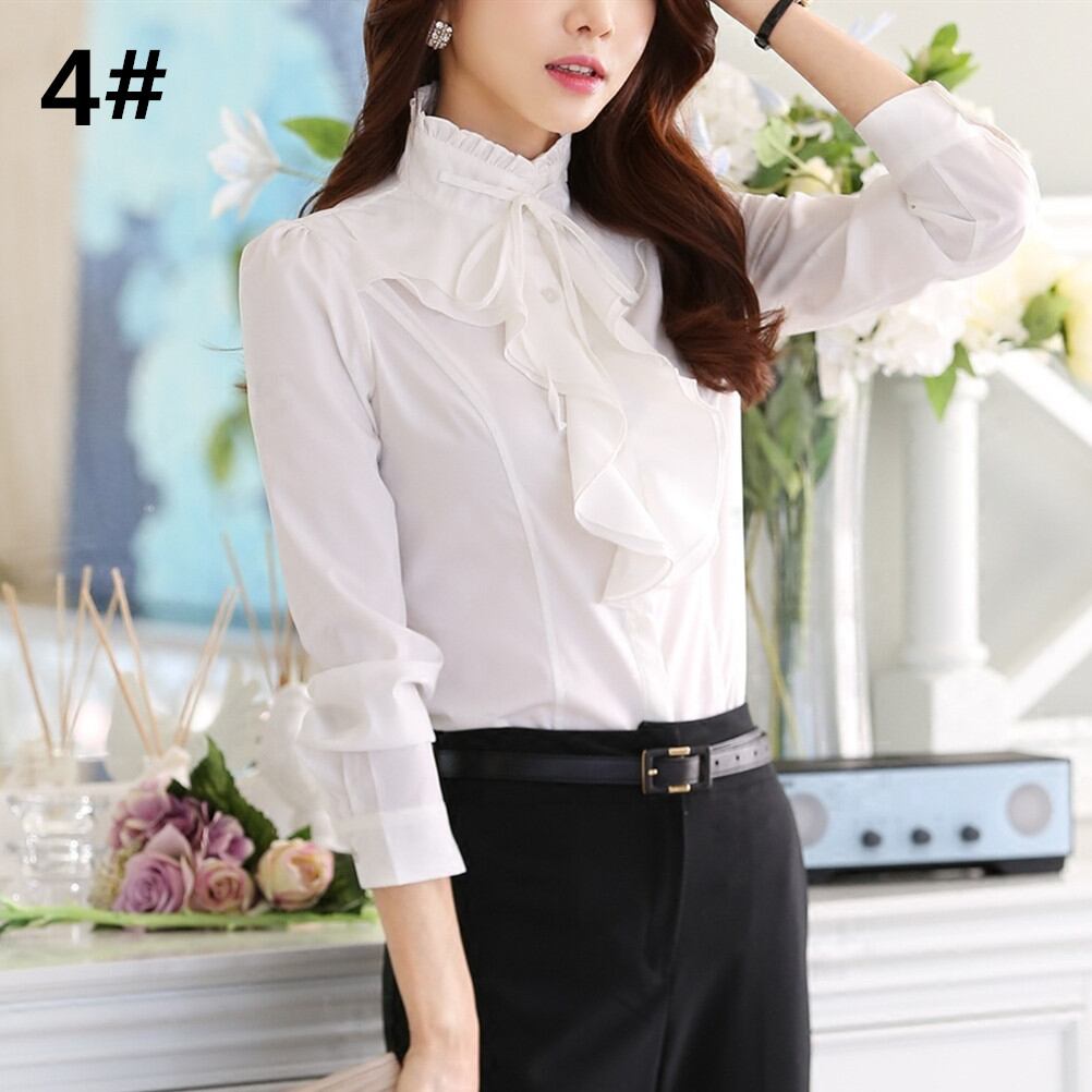 ◎【送料無料】オフィスシャツ 長袖 ブラウス シャツ フリル オフィス 立ち襟 ビジネス 通勤 OL