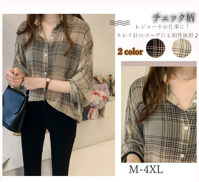 ◎【送料無料】2026年秋新作 ブラウス シャツ トップス レディース チェック柄 長袖 カジュアル