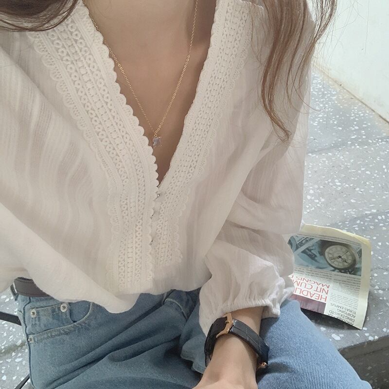◎【送料無料】2026年春夏新作 ブラウス Vネック シャツ 長袖 気質 エレガント 韓国風 Sweet