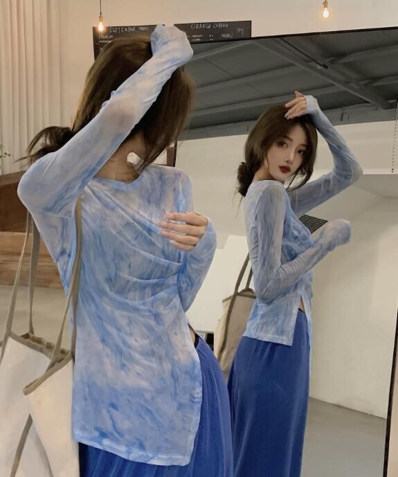 レディース トップス Tシャツ ブラウス 長袖 シースルー メッシュ 紫外線対策
