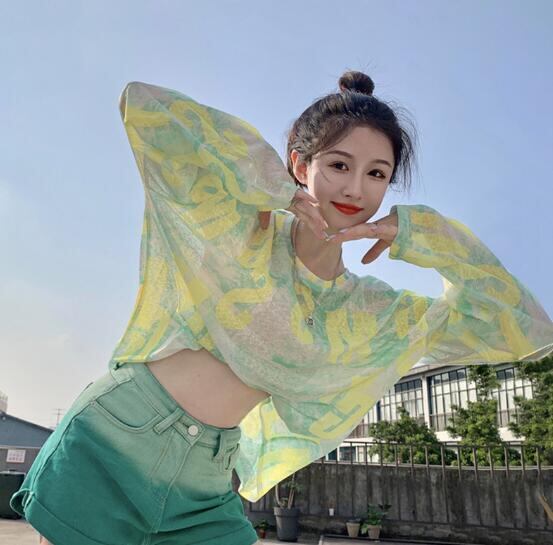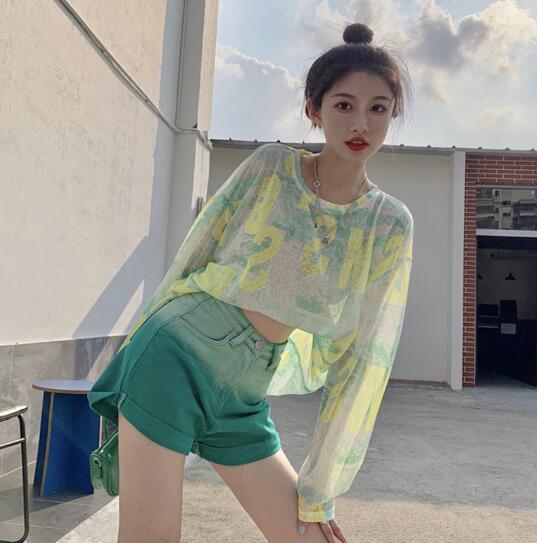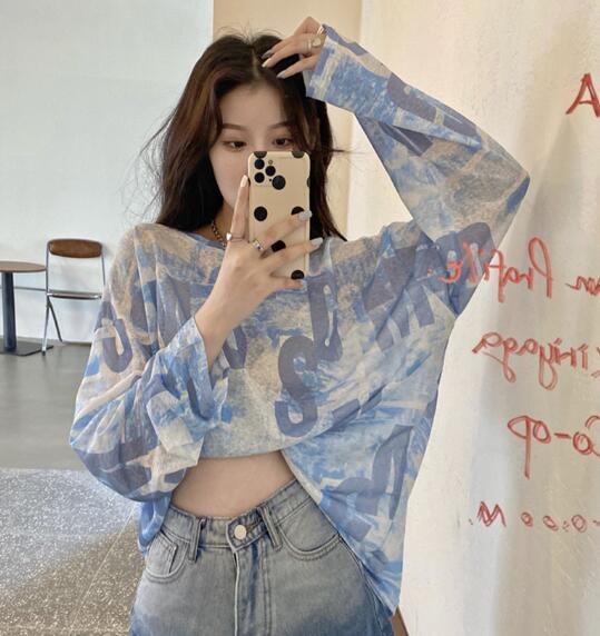 ◎【送料無料】夏 レディース トップス Tシャツ 長袖 紫外線対策 冷感 絞り染 シースルー 韓国風