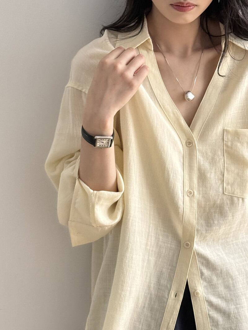 胸ポケット付のゆったりしたサイズ感のシャツです。