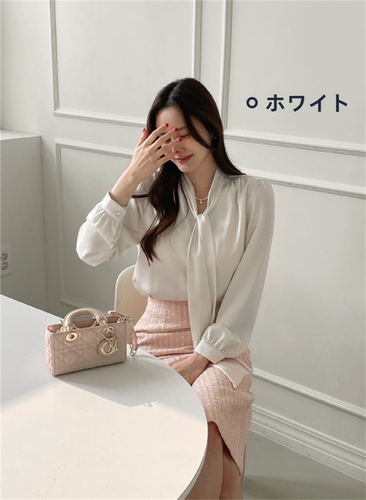 ◎【送料無料】エレガントなロングスリーブVネックシャツ 無地 通勤向け 2025春