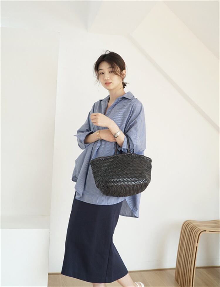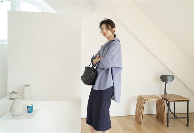 ◎【送料無料】学園風 ストライプ長袖シャツ ロングサイズ