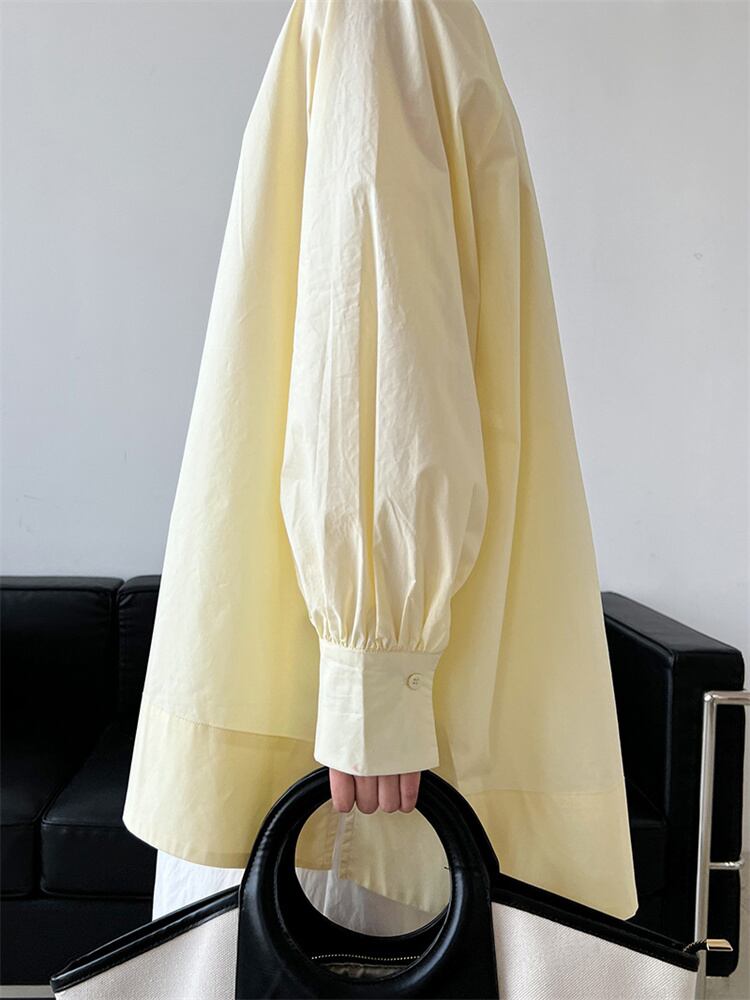 ◎【送料無料】シンプルなロングシャツ 丸首ロングスリーブ ミドル丈 カジュアルベース