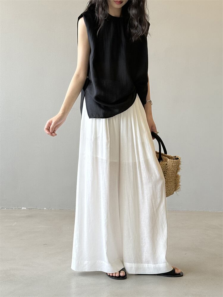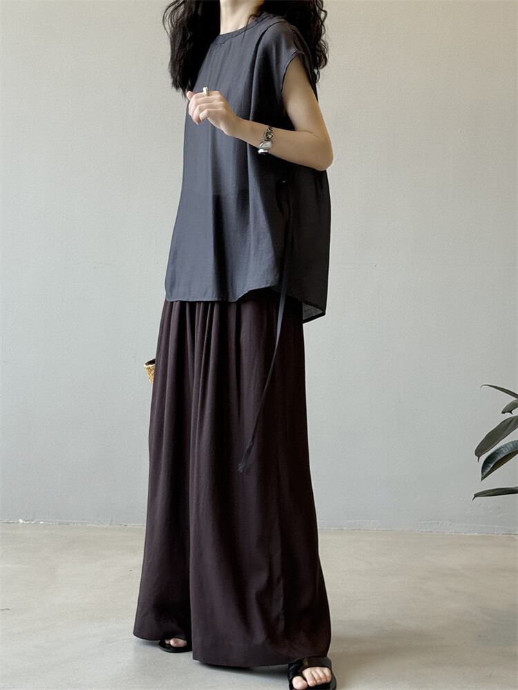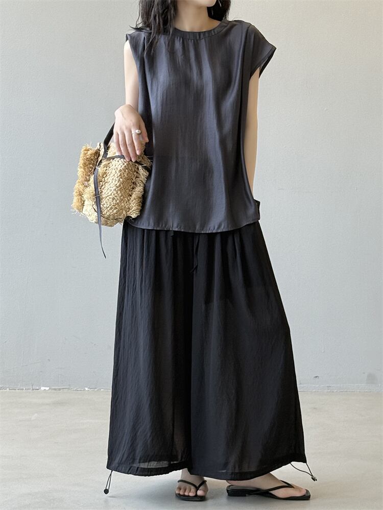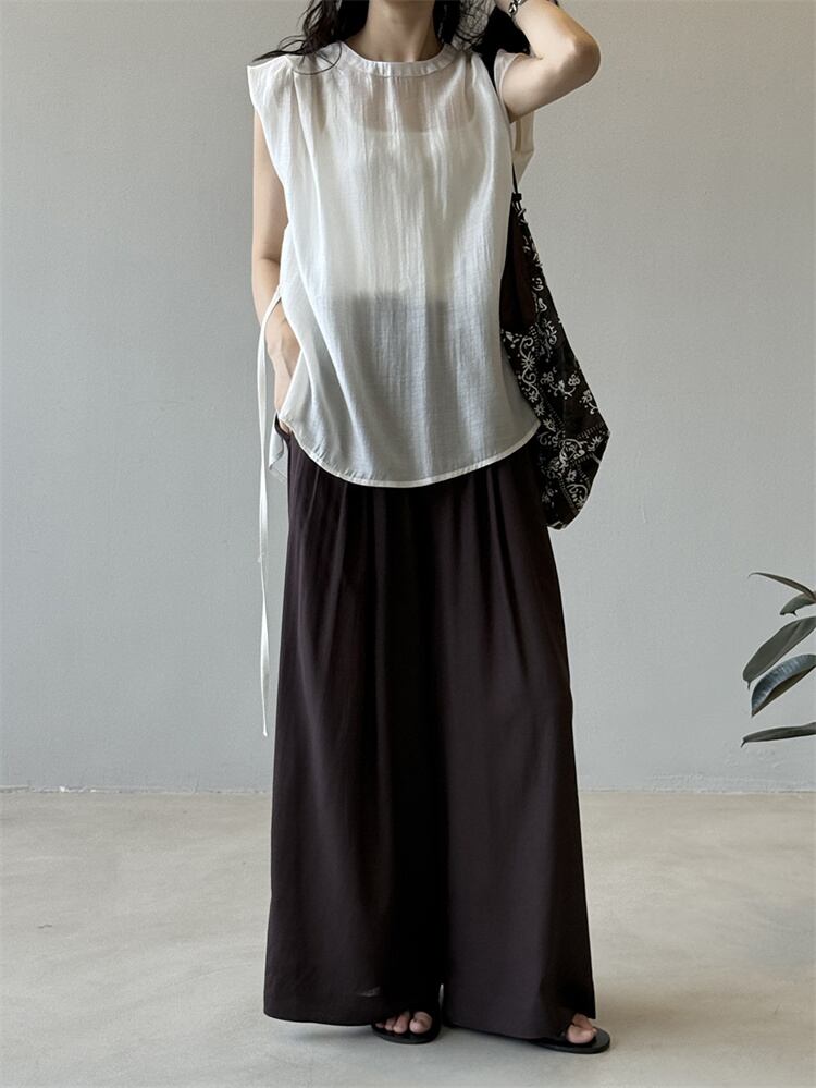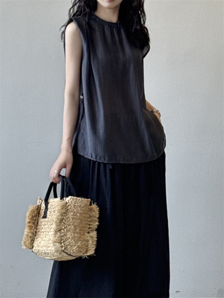 ◎【送料無料】丸首ノースリーブシャツ 女性用 背中ボタンデザイン 夏用トップス
