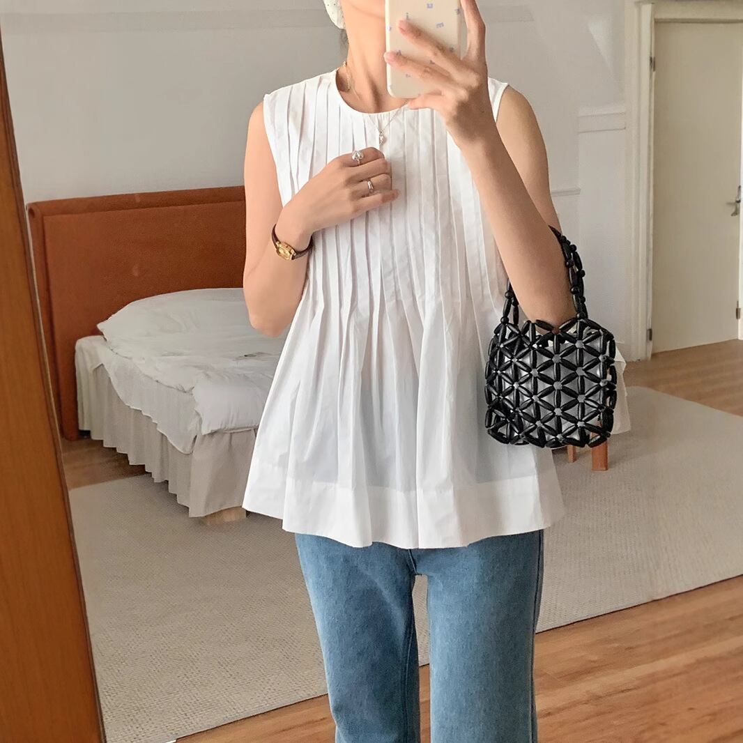 ◎【送料無料】トップス Tシャツ ノースリーブ ラウンドネック 着回し 体型カバー レディース服 カジュアル 夏