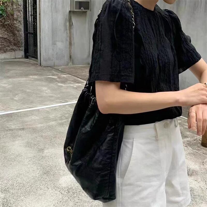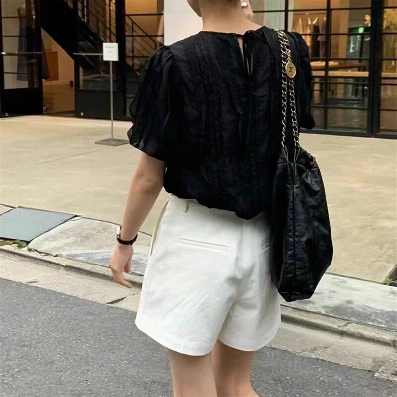 夏にピッタリな素材のトップスは今季注目のアイテム。