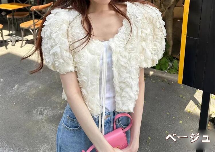 ◎【送料無料】2025夏新作 立体ローズ透かし編みトップス ゆったりタイドアップ仕様 ロマンチックな雰囲気