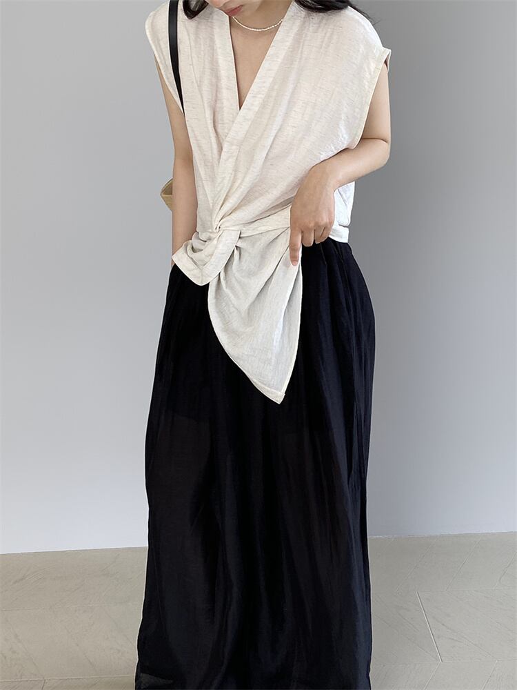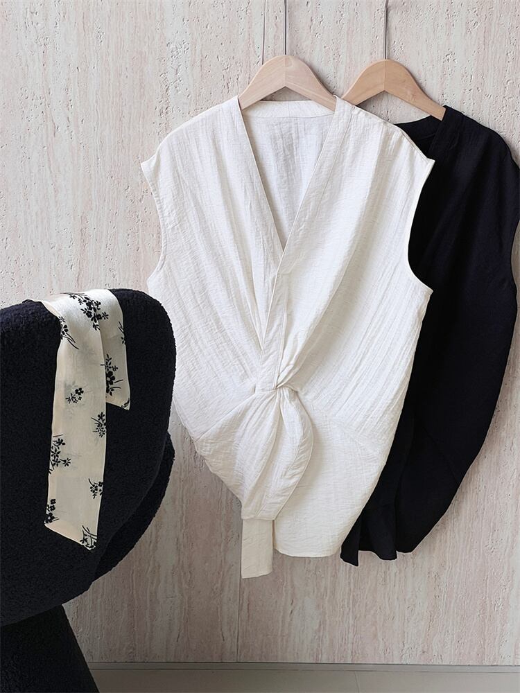 2025新作 夏物 レディースVネックノースリーブシャツ