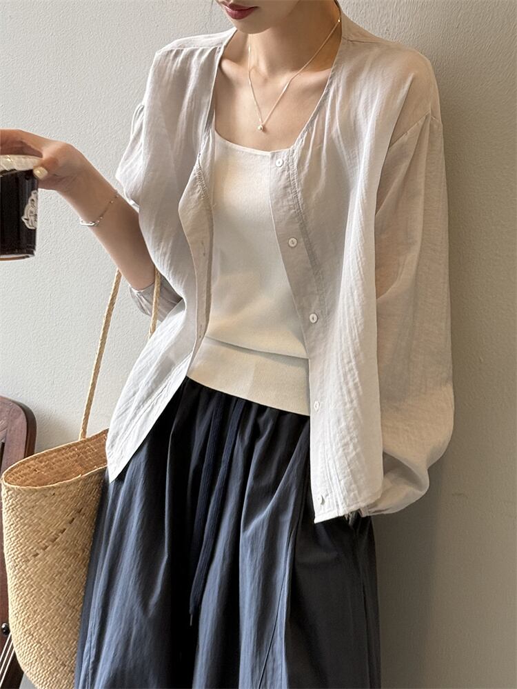 【2025夏】シンプルUVカットシャツ 丸首長袖 オーバーサイズ カジュアルトップス