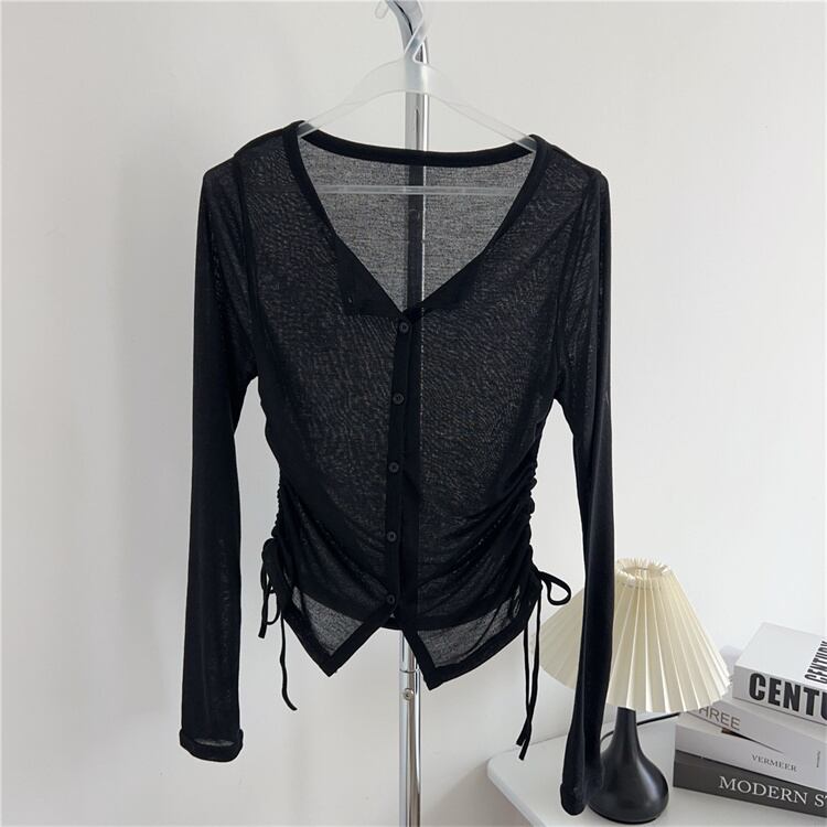 薄手透け感ニットカーディガン UVカット 良いと思います シングルボタントップス