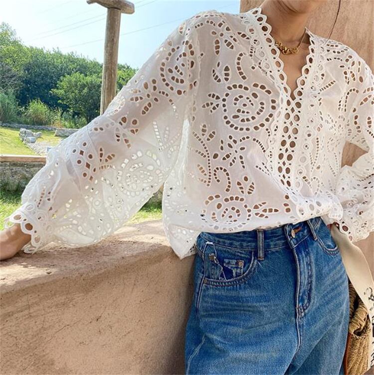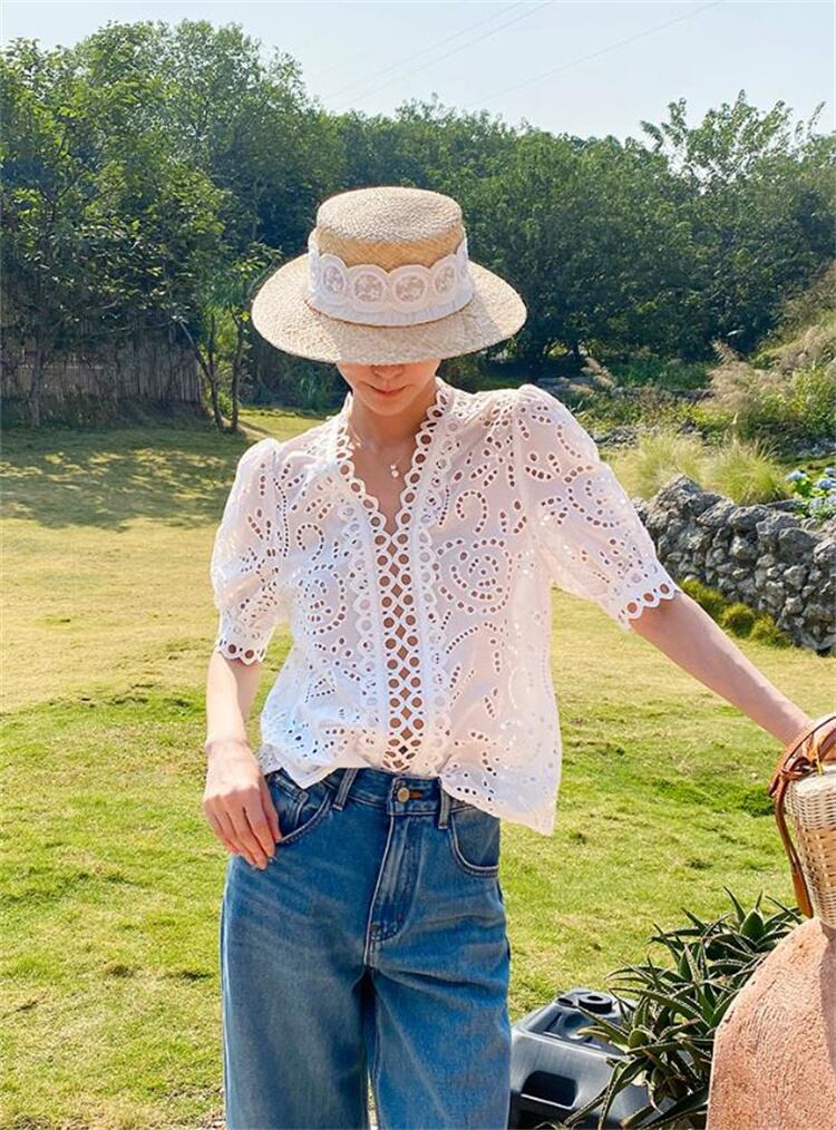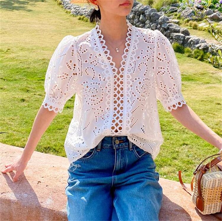 ◎【送料無料】人気沸騰【アート着回し】2025春夏 レトロ刺繍Vネックシャツ ロングスリーブ・半袖対応