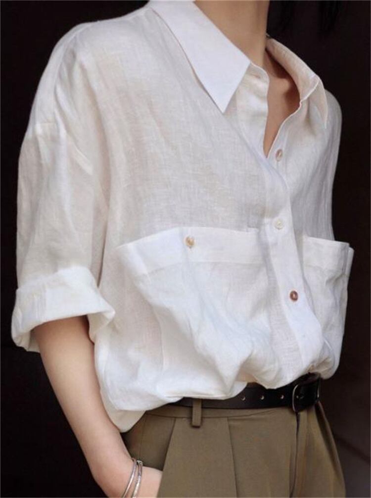 ◎【送料無料】クーポン適用OK【UVカット】2025夏 綿麻 ワイドシルエット シングルボタンシャツ ナチュラルテイスト