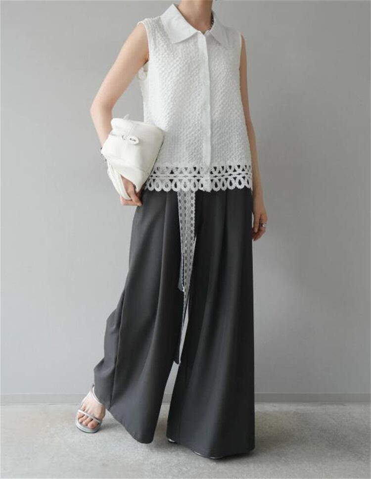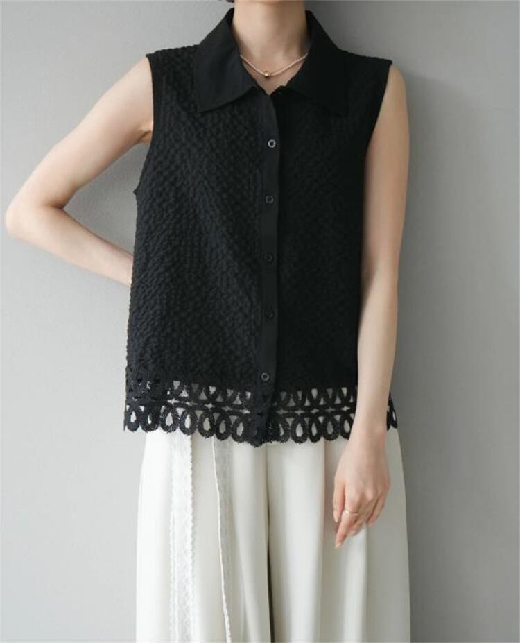 オリジナル 2025 SS 刺繍アクセント ノースリーブ&ロングブラウス 女性用