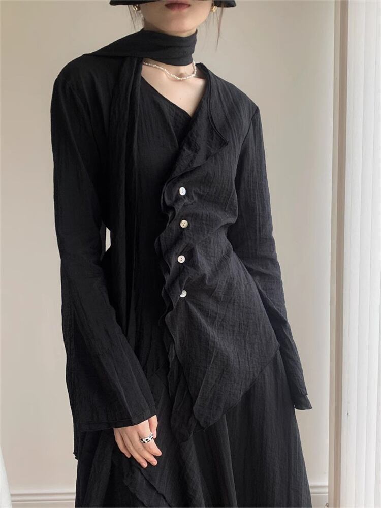 ◎【送料無料】在庫限りお見逃しなく Vネック ロングスリーブ アシンメトリーデザイン シャツ バルーンスリーブ