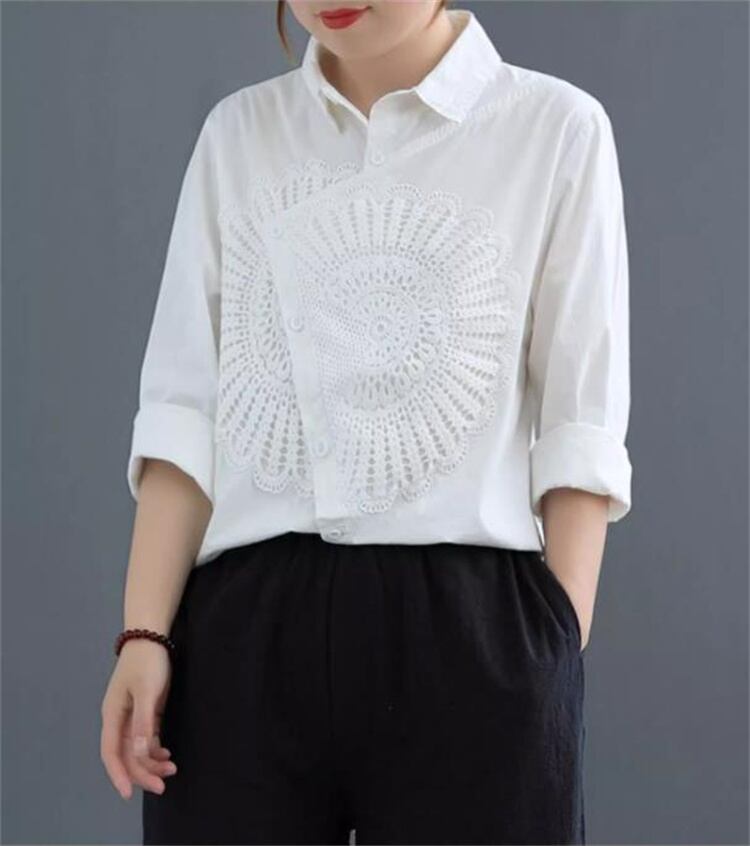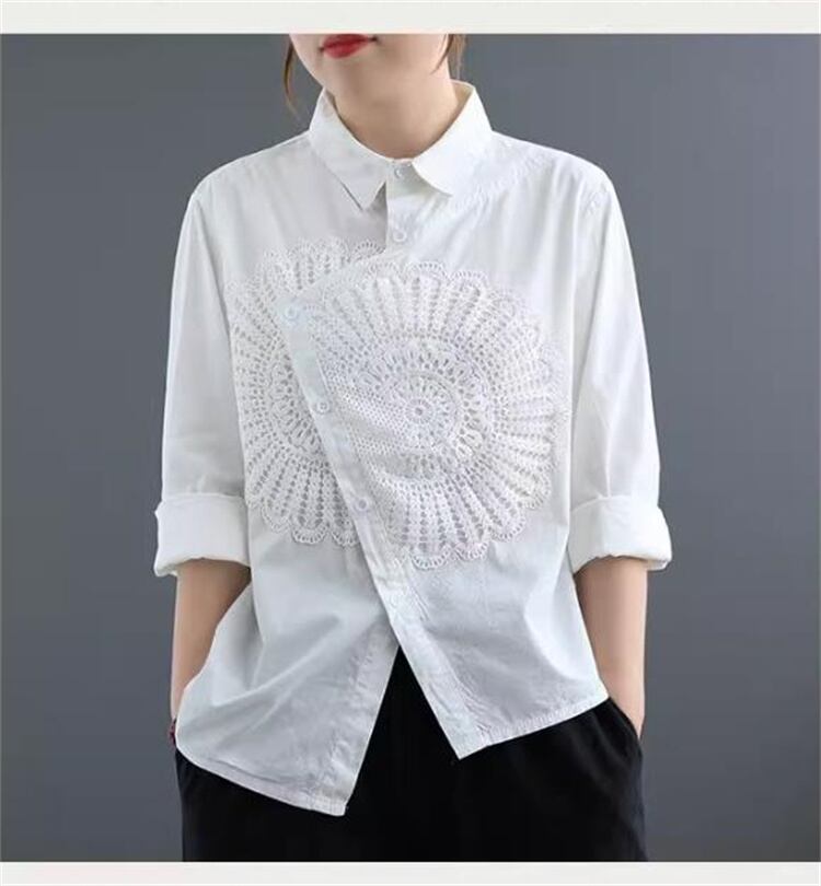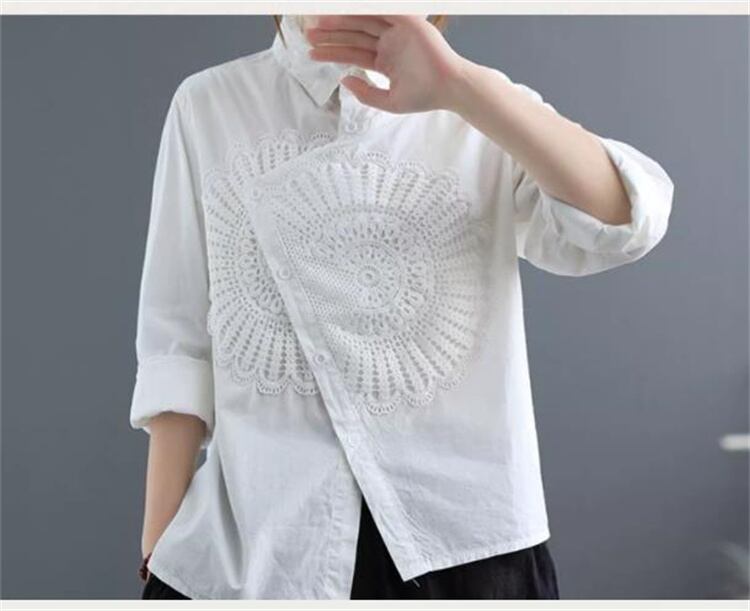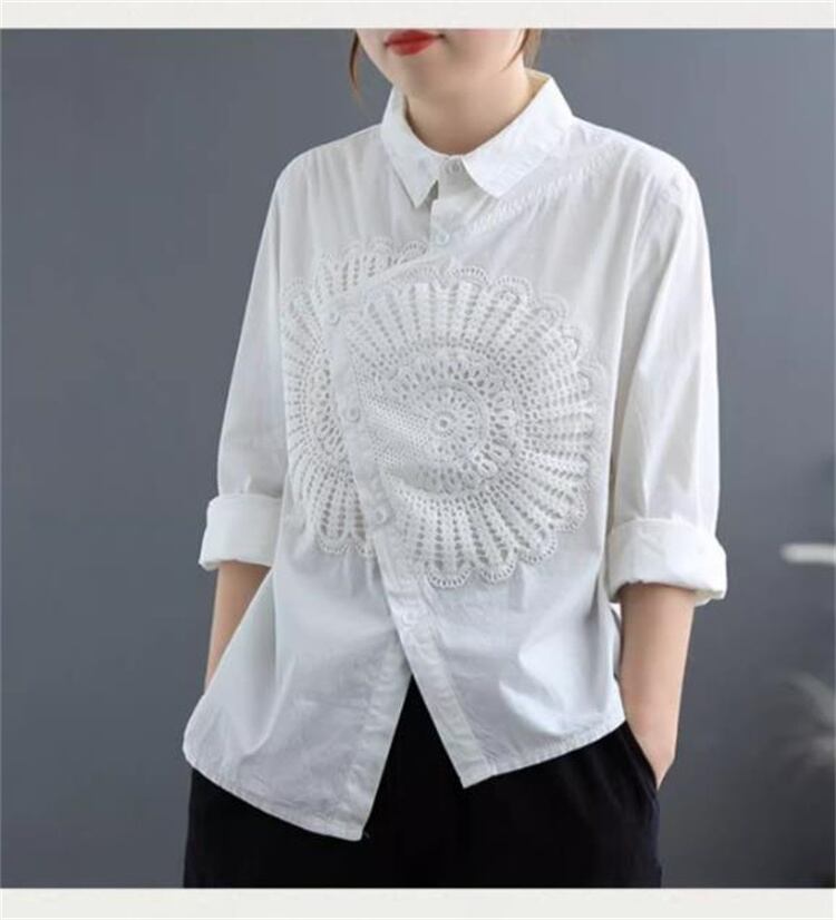 ◎【送料無料】柔らかい履き心地 アールヌーヴォー レトロ アシンメトリー コットンリネンシャツ ゆったりシルエット
