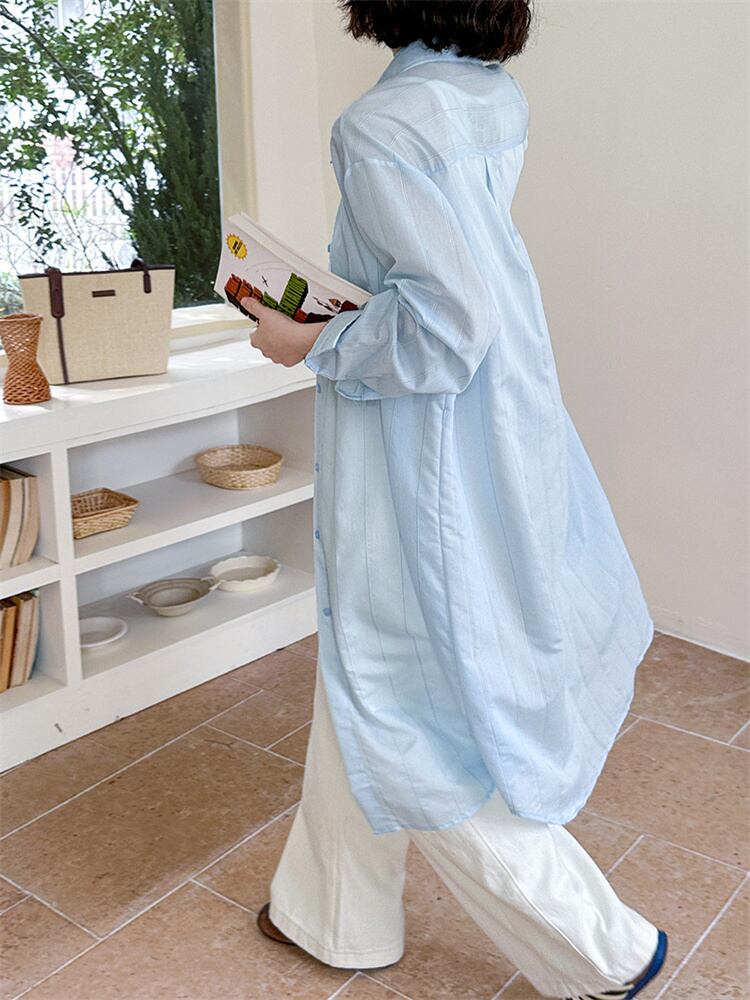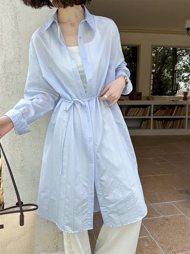 薄手透け感シャツ 淡色ロングスリーブ 軽量クール素材 女性用カジュアルトップス