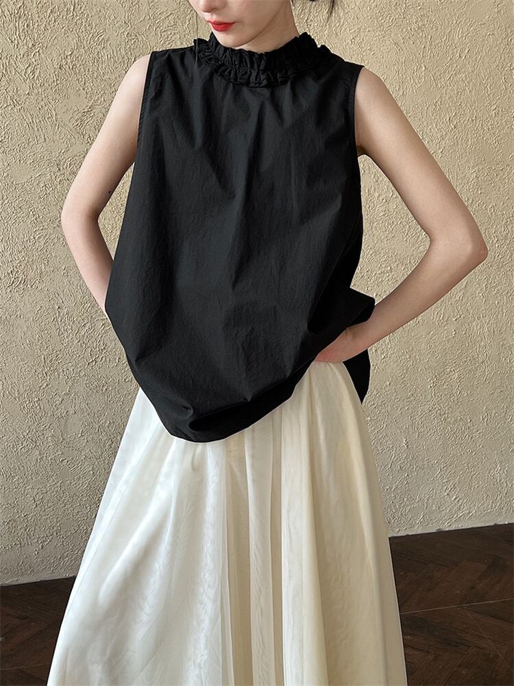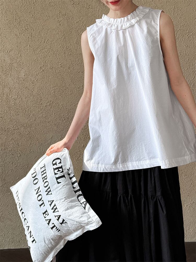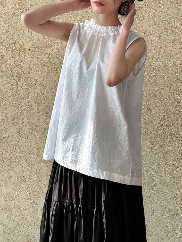 新作登場!ヴィンテージ風リラックスシルエットのノースリーブシャツです。深めVネックデザインが首元をすっきり見せ、ゆとりある着心地で体型を優しくカバー。薄手の柔らかい生地は通気性抜群、夏の暑さも快適に過ごせます。袖なし×ルーズカットで、裾をパンツにインしたり、レイヤードしてもお洒落。シンプルながら存在感あるデザインで、カジュアルから少しフォーマルな場面まで幅広く活躍。洗練された大人のレトロスタイルを叶える一枚です。∽注意事項∽