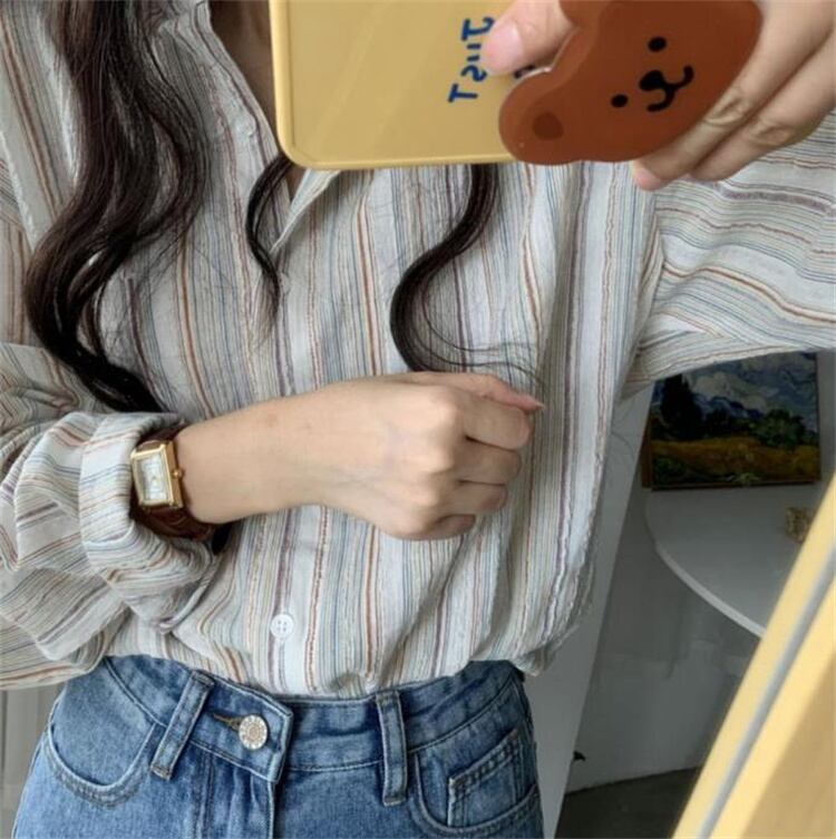 ◎【送料無料】推薦デーリー ウェア気質 2025年春夏新作 レトロラフデザイン 細ストライプ コットンリネン シャツ