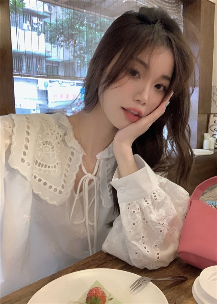 ◎【送料無料】着まわし抜群 気質 大人カジュアル ラフスタイル レース刺繍デザイン ベビーシャツカラー トップス