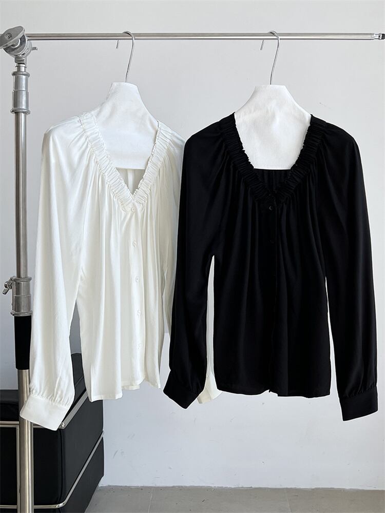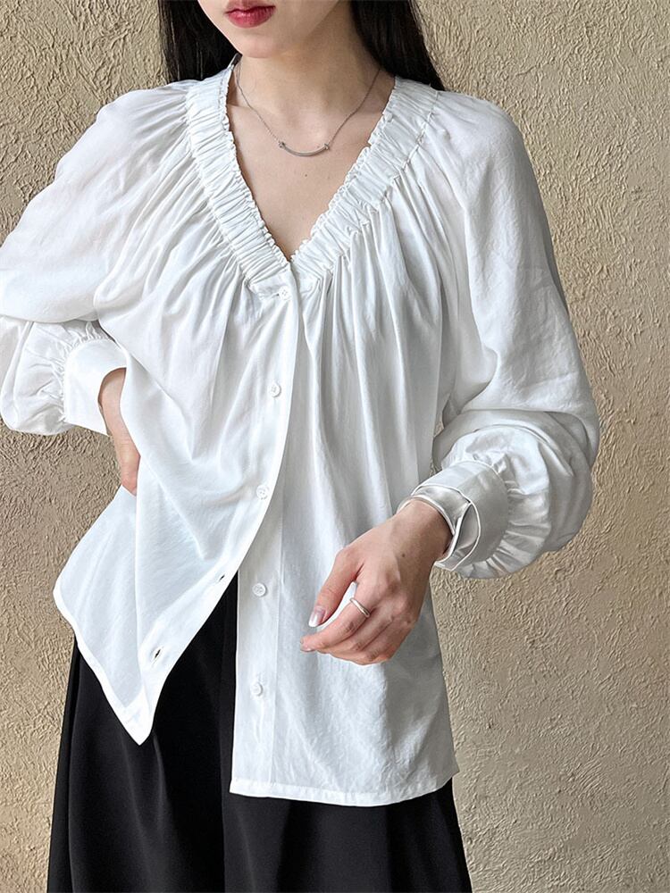 ◎【送料無料】大人の魅力 上品 女性らしい プリーツ×ゆったりVネックシャツ 大人カジュアル ビジネスシーン対応