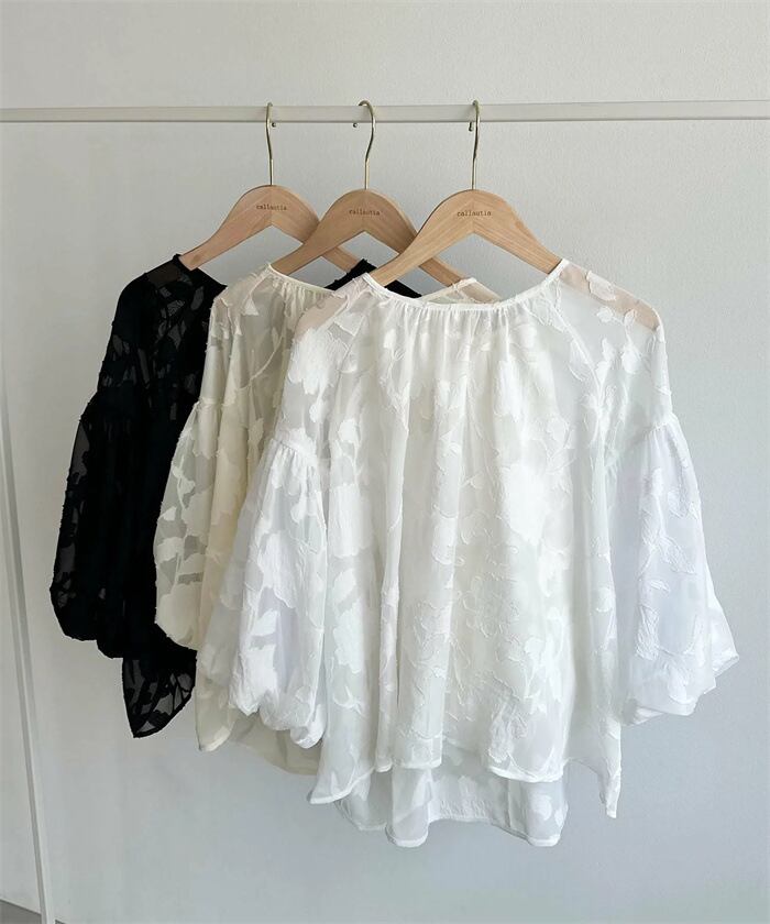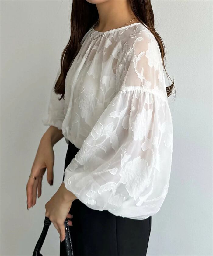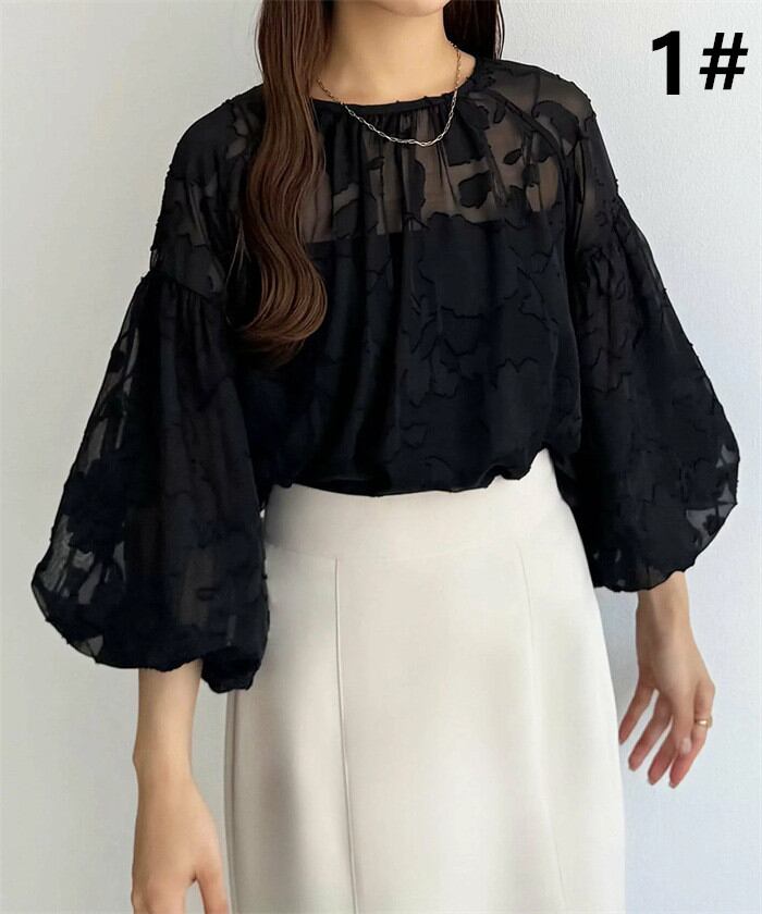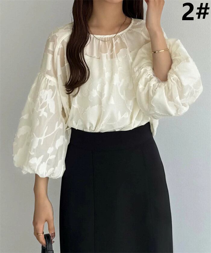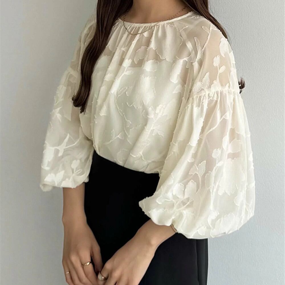 ◎【送料無料】2025新作 レース ブラウス 花柄 パフスリーブ レディーストップス 透明感 大人可愛い