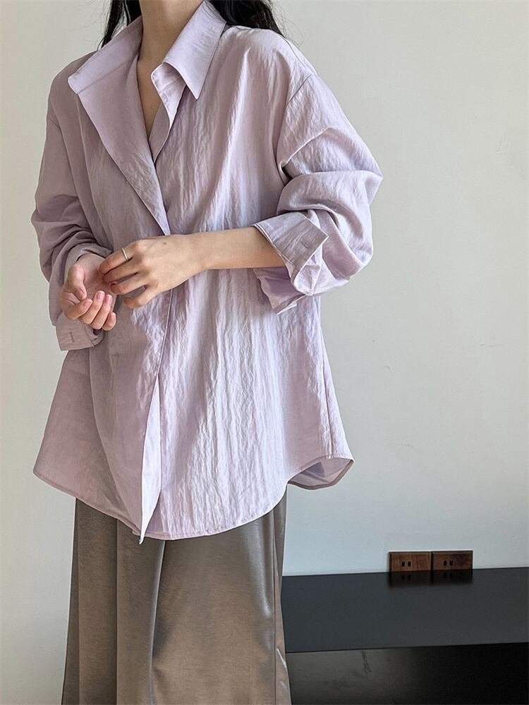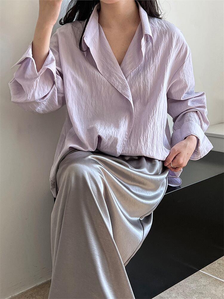 シボ加工シャツ 2025春新作 エレガントロングスリーブトップス 大人カジュアル