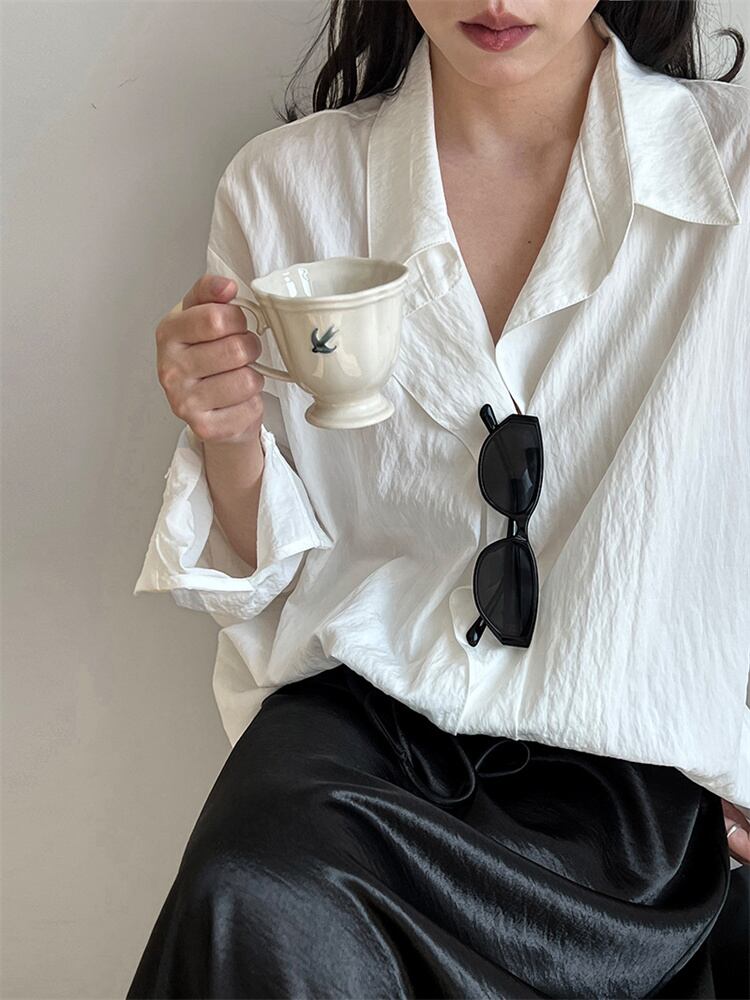 韓国トレンドのゆったりシルエットシャツ