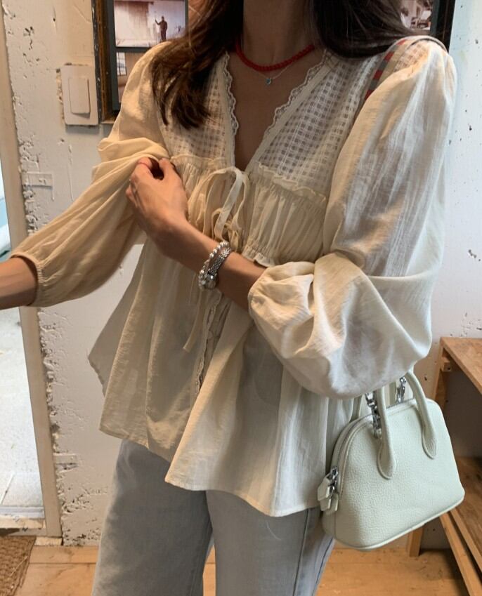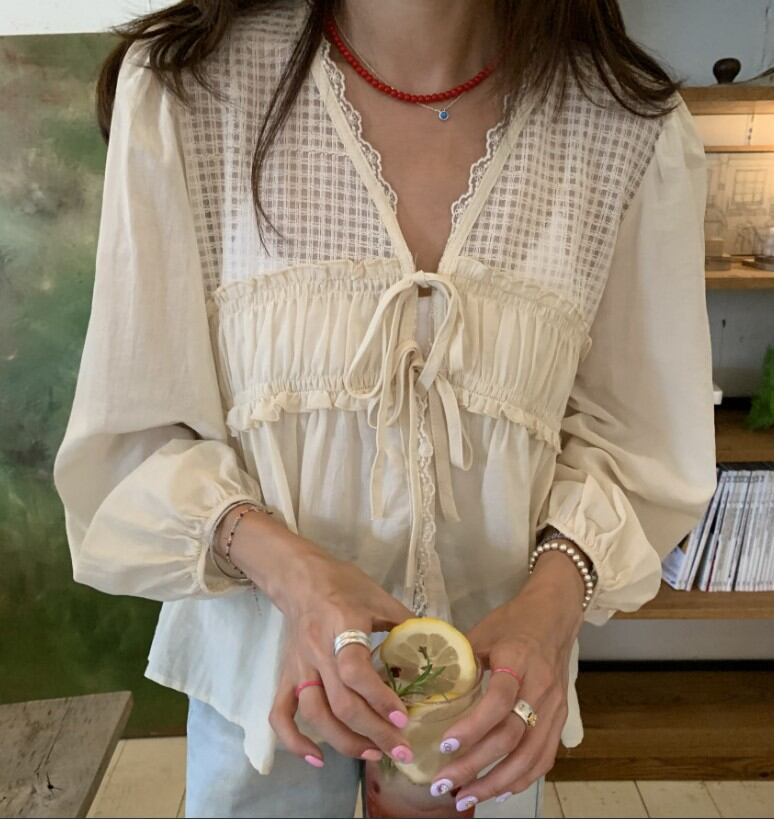 ◎【送料無料】ブラウス シャツ 長袖シャツ レディース トップス vネック Sweet 可愛い 韓国風