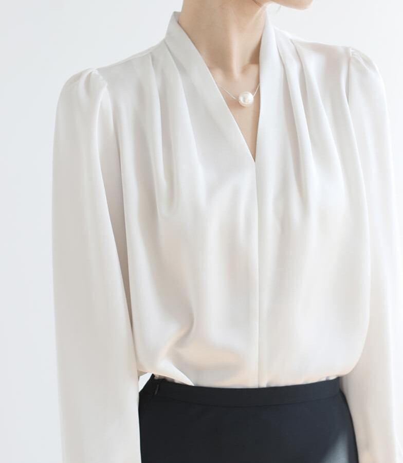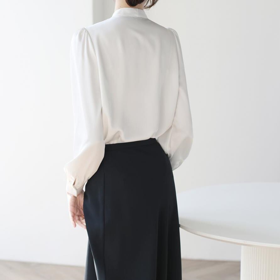 1枚で着るのはもちろん、ジャケットやカーディガンのインナーとしても使える万能なブラウス。