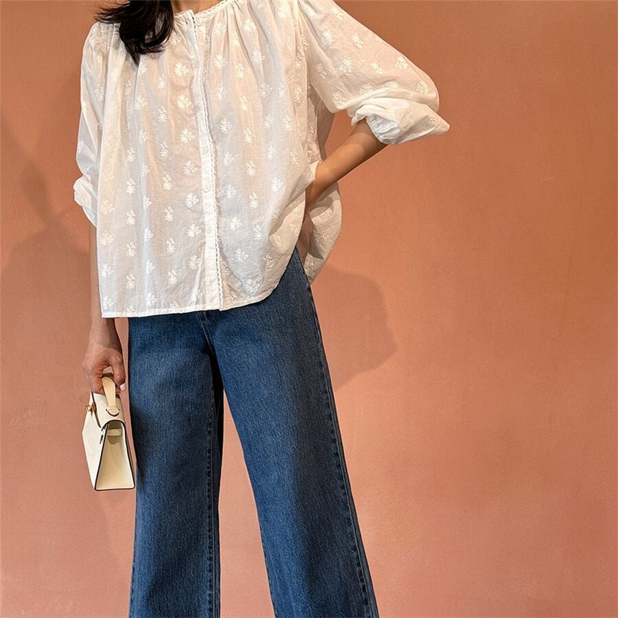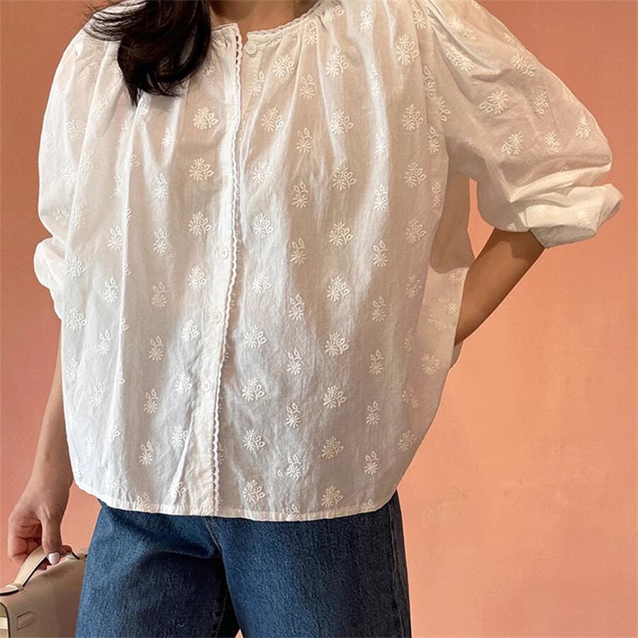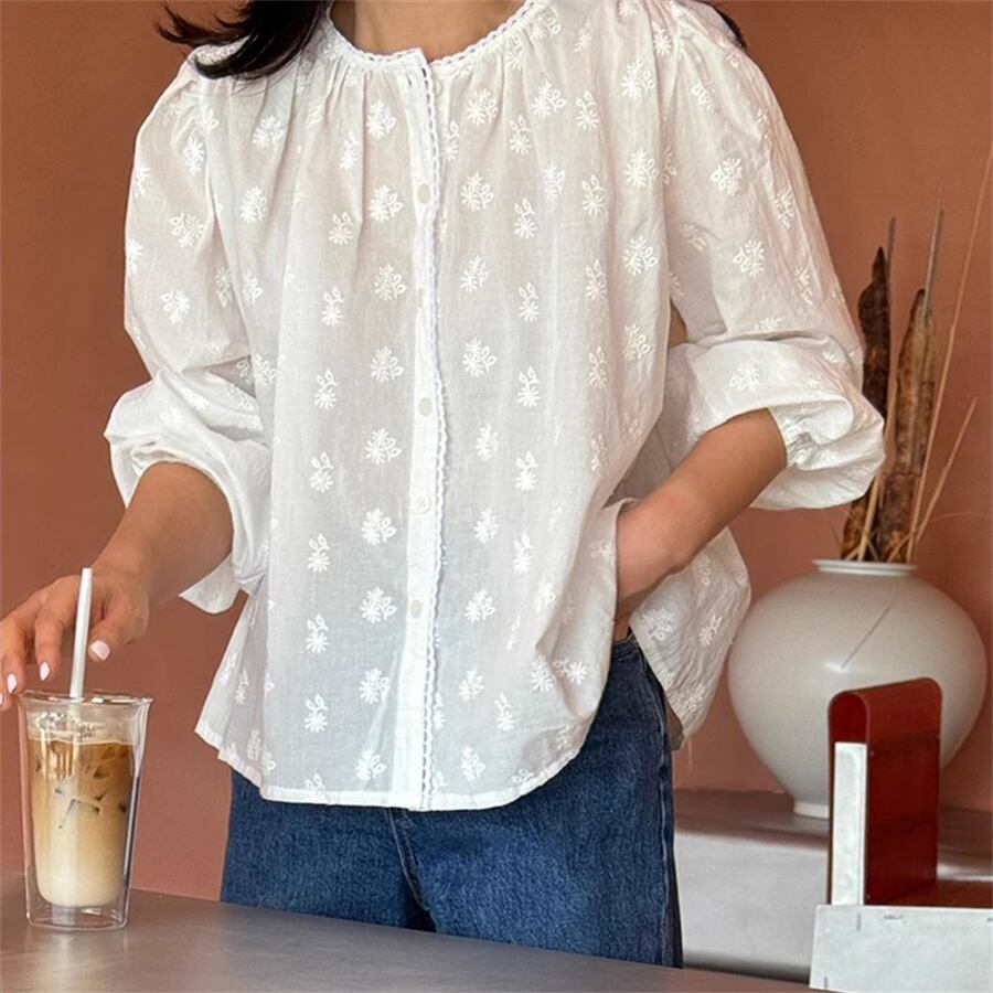 ◎【送料無料】2024秋新作 トップス 刺繍 長袖 カジュアル 体型カバー ラウンドネック レディース おしゃれ