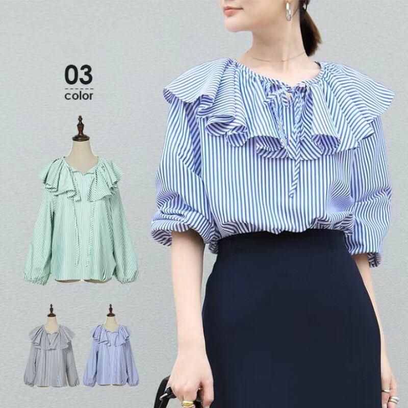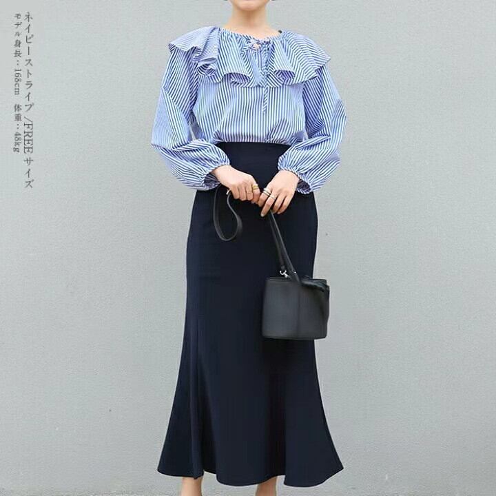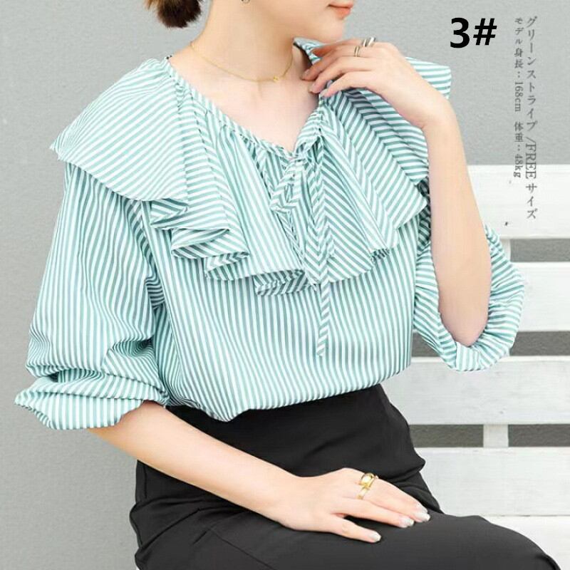 ◎【送料無料】2026年春新作 ブラウス シャツ ストライプ トップス レディース ランタンスリープ Sweet