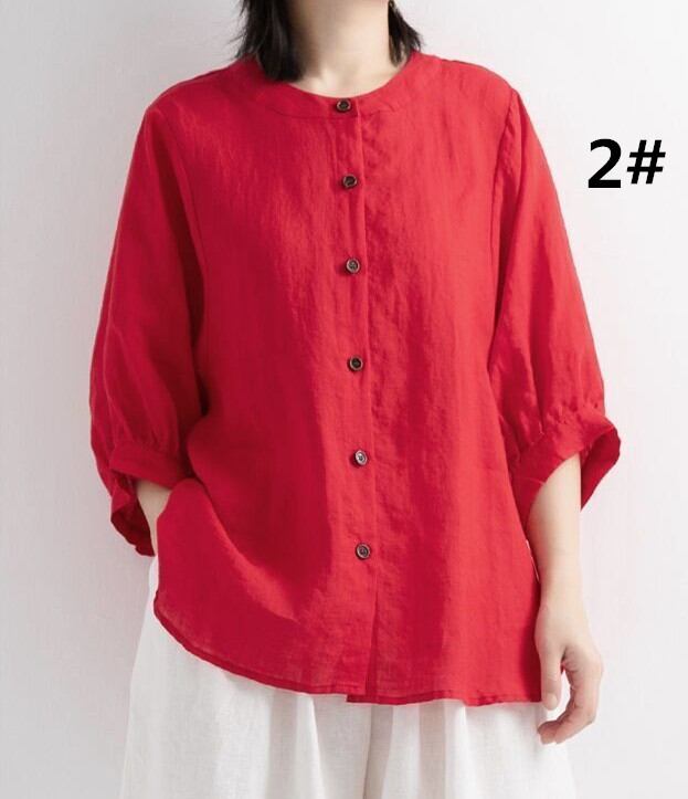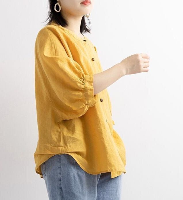 ◎【送料無料】ブラウス 2026年夏新作 シャツ 人気シャツ トップス リネン ランタンスリープ 着回し